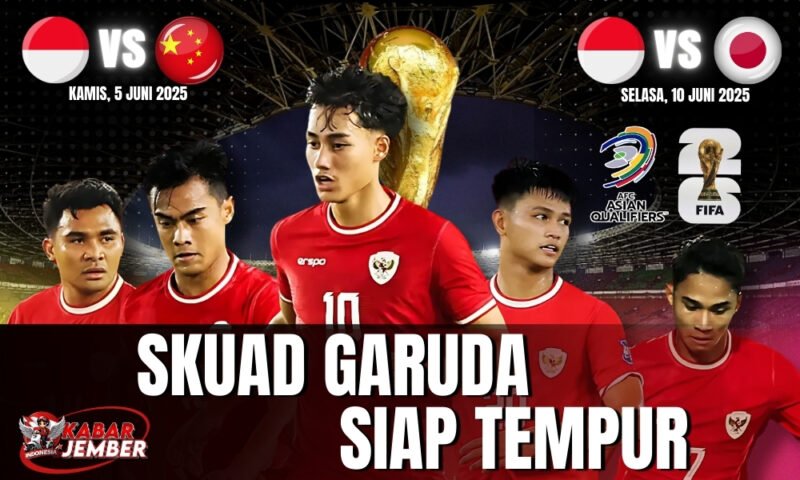Jakarta, 19 Mei 2025 – Tim Nasional Indonesia bersiap menjalani dua laga krusial dalam lanjutan Kualifikasi Piala Dunia FIFA 2026 zona Asia. Skuad Garuda akan menjamu China di kandang sendiri, Stadion Utama Gelora Bung Karno (GBK), Jakarta, pada Jumat, 5 Juni 2025, sebelum terbang ke Jepang untuk menghadapi tuan rumah di Panasonic Stadium (Suita Municipal Football Stadium), Osaka, pada Selasa, 10 Juni 2025.